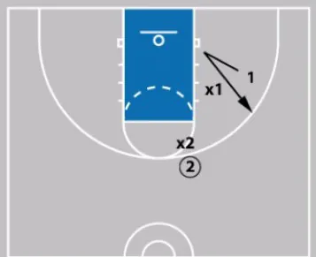 1. A passer is on top with a defender guarding them. The passer cannot dribble to start the drill.