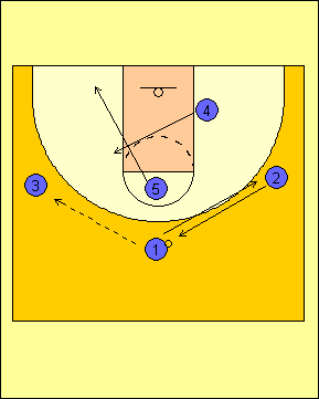 When the ball is passed to Player 1, Player 5 flashes in the middle of the lane looking for a quick entry