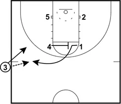 3 in bounds the ball to 1 and then steps in to the left wing.