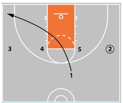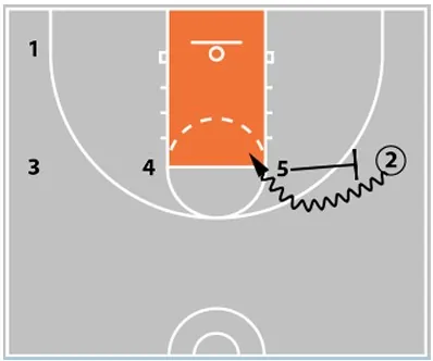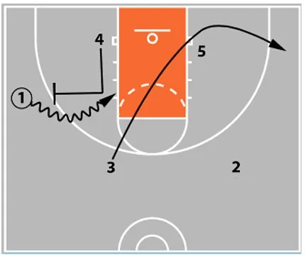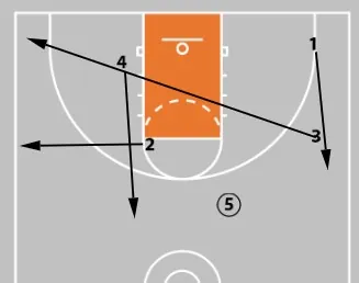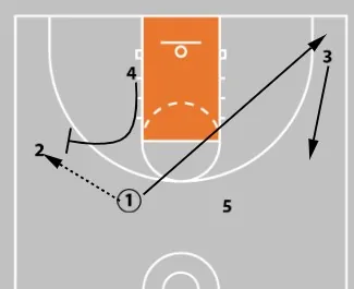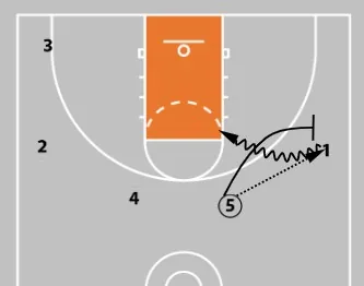 - 5 passes to 1 and sets a ball screen, continuing the pattern.