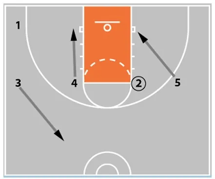 - If 2 can’t score or pass to 4 they swing the ball to 5.
