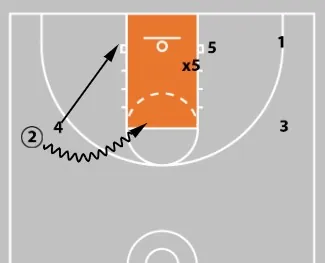 If 2 can’t score or pass to 4, their only realistic option is to pass to 5. If x5 denies that pass, the offense has stalled.