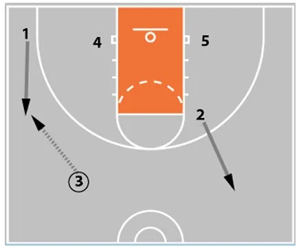 - 1 lifts and receives a pass from 3.