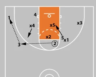- In this example, x4 closes out on 3, resulting in the extra pass to 1 in the corner.