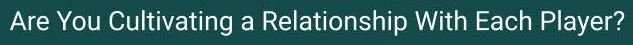 Contrary to some philosophies, players have to like you in order to perform for you. It doesn’t mean you’re “best buds.”