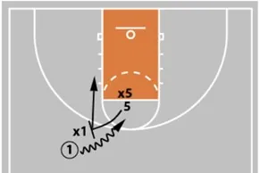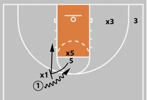 For example, because we set a lot of ball screens in the slots we played 2v2 with the post starting above the foul line and the guard with the ball in the slot. The offense would be allowed one action to attack the rim from this angle.