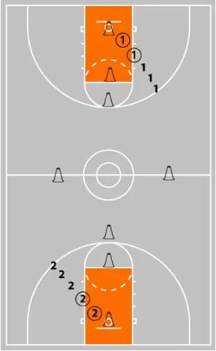 You'll be amazed at how much excitement the kids have doing this drill and the pandemonium when one of them hits the 1/2 court shot! What a great way to end a practice!