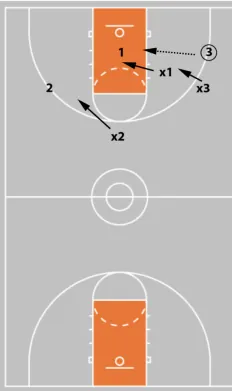 • Because x2 is 2 passes away, they should drop back into a ball-you-man position.
