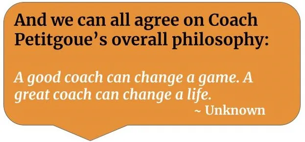 Keep reading for some winning coaching tips and strategies from Coach Petitgoue...