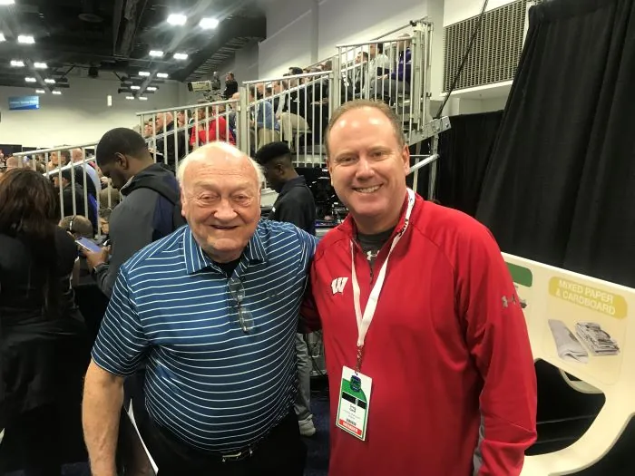 Coach Petitgoue with Bo Ryan, former coach of UW-Madison Men's Basketball Team