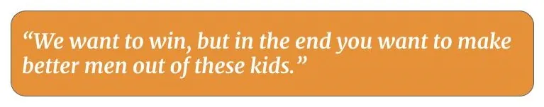 I've never been a screamer or a hollerer...I want kids to leave with a good taste when they're done with practice.