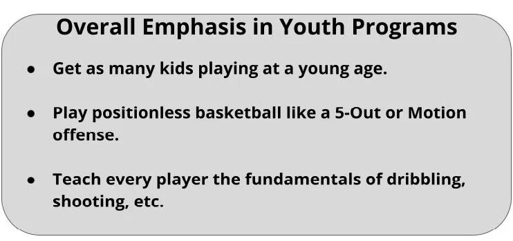 2. I encourage the grade school coaches to play a positionless offense, like a 5-Out where everybody handles the ball, everybody dribbles, everybody shoots...Which makes them a better all-around player.