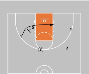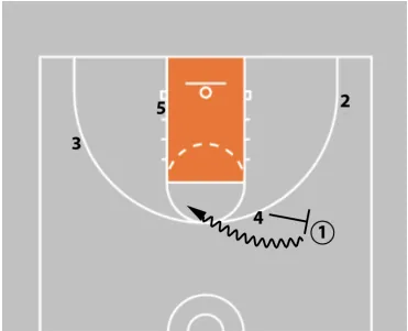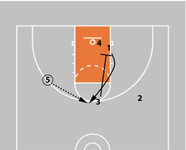 • 1 runs to the top of the key to receive a pass from 5 looking for a catch and shoot opportunity.