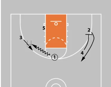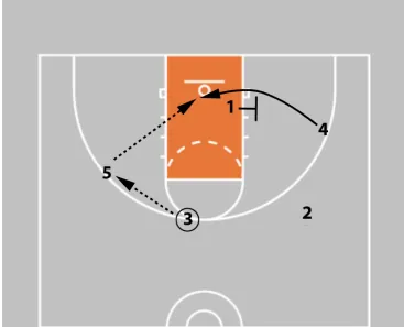 • If 1's defender is anticipating the pass to 5 and is going to try to prevent 4 from coming off the screen cleanly, 3 maintains possession up top.