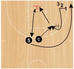 • 3 and 4 rebound the shot from 1 and pass it out to 5.