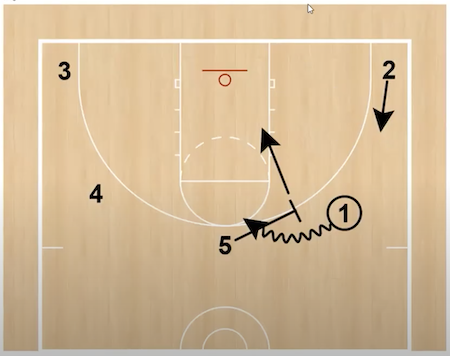5 comes up and sets a ball screen right behind the handoff to get the offense going.