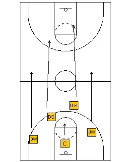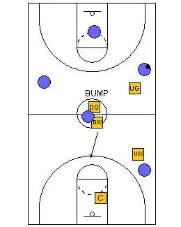 would not move the center up the floor because it will leave the basket uncovered. Other than that, the only other rule would be that, if you are guarding the man in the middle, you do not leave until the next player comes to guard.
