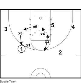 4. Deny the Player - You can also deny the player the ball from the start. The player guarding the inbounder completely denies the star player while the defensive player assigned to the star player is on the opposite side. If he were to catch the ball, you could have the player denying the pass sprint back to the person he was initially guarding. You could also use the player guarding the inbounder to instantly form a double team to try to force the star player to get rid of the ball.