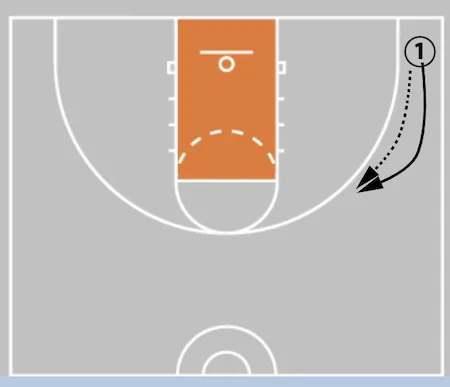 Start at the top of the key with a ball. Run to the free throw line. This simulates setting up your defender before the screen.