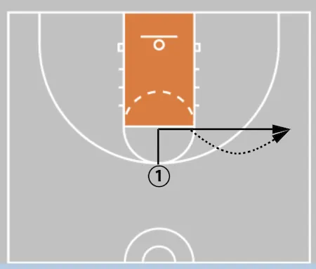 Catch the ball in the slot area. Perform a reverse pivot on your outside foot to square to the basket. Take 10 shots on the right side. Repeat on the left.