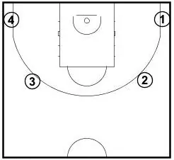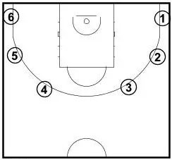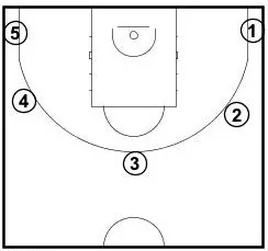 Shooter then takes 1 shot from each spot, now starting from the left corner from the same spots. Player attempts 10 shots.