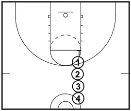 After player 1 has finished the lay-up, player 2 will begin the process. Player 2 will sweep, step, dribble and finish.