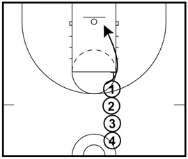 The drill should be run from each side of the court, teaching players to sweep from left to right and right to left. This will also work on footwork by allowing them to take the first step with both their right and left foot.
