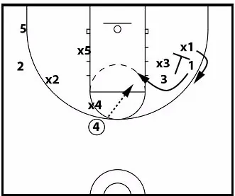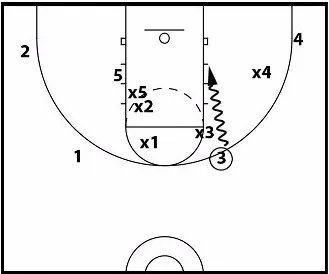 You’ll notice the same thing happens when the ball is passed to the corner in a 3-out, 4-out, or 5-out offense. |