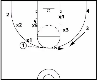 When cutting to the wing, you will either In the diagrams to the right, you will see that it takes you to the baseline. Most times, due to the positioning of the passer, the defense will be inside of the offensive player. In the diagram, the defender is slightly to the left of the offensive player.