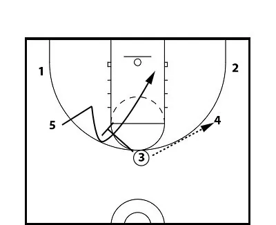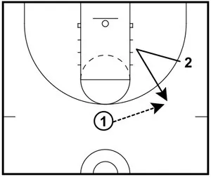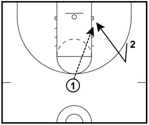 In this example, the player cuts up towards the elbow, then pops out to a wing spot to receive a pass.