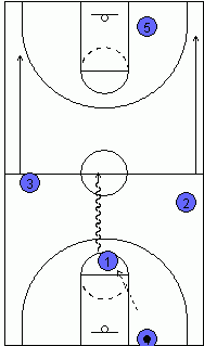 This break is very similar to the 2 man break but it is designed to get the ball to the 5 man.
