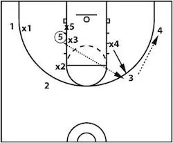 Additionally, just the threat of a post entry pass is effective. That's because a help defender will commit too far and open up a basket cut or skip pass for an open shot to another teammate.