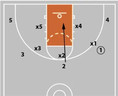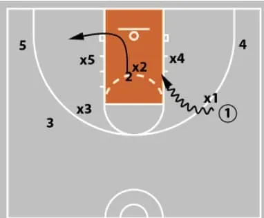 If x2 is quick enough, then you leave 2 or 1 open based on defensive rotations.