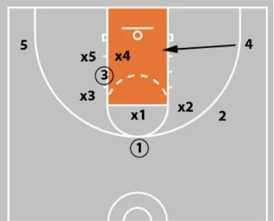 If x2 drops down to defender 4, 4 has a better chance to gain inside position for the offensive rebound.