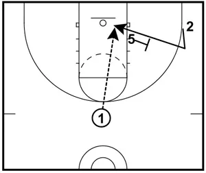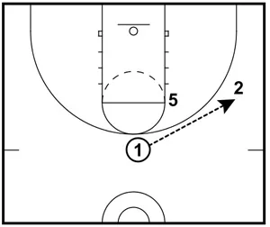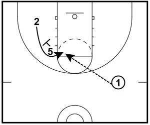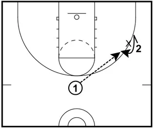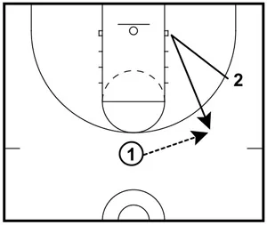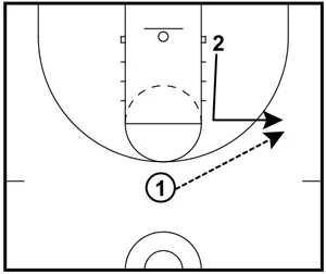 However, the dribble is not required for the shallow cut... if the ball were at the left wing, then 1 would straight cut to the right wing (without a ball) and 2 would shallow cut.
