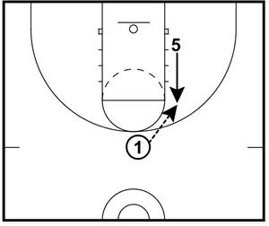 This cut starts out on the perimeter and involves either a post player or a perimeter player who has the ability to post up a smaller player.