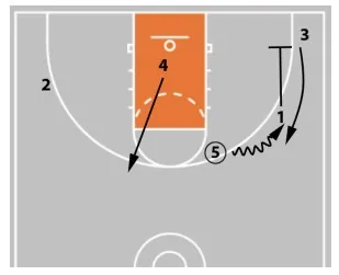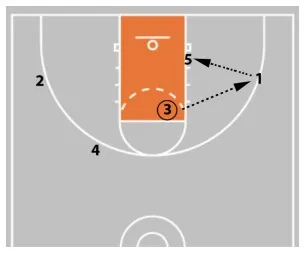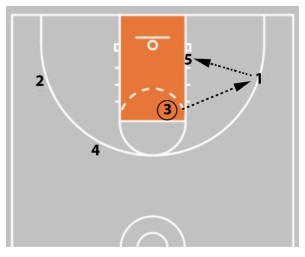 An alternative to the 5 & 1 ball screen is for 1 to pass to 5 and then chase the pass to receive a handoff.