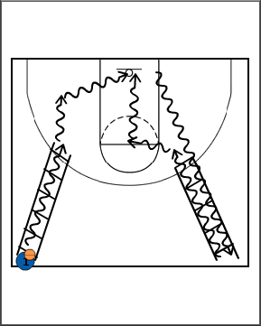 - In this step the player is moving through the ladder while handling the basketball and then finishing at the rim.