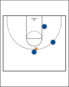 - Instead of making the pass to a cutting player 1, have the big, Player 5, reverse the ball to Player 2 on the opposite wing.