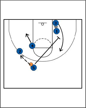 - After 1 passes to 5, 1 then goes down to set a screen for 3.