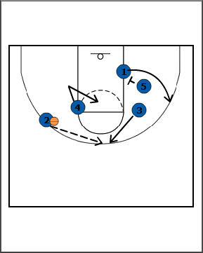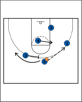 - After setting a pick for 3, 1 flashes to the block in case 2 can hit him for a quick layup.