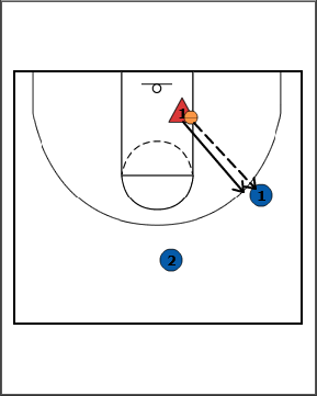 - Offensive player 1 passes the ball to offensive player 2.