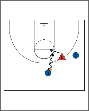 - Player 2 attacks the lane on the right side forcing the defensive player to help.