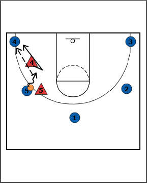 - If the offensive player with the ball makes a dribble move to the basket, defensive player 4 will help on the penetration by 5 and then recover to his own man on the pass.