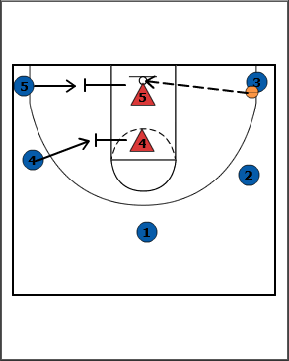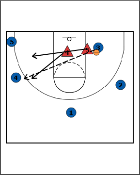 - If offensive player 3 skips the ball back to player 4, the defensive players would have to recover back to their man and prevent any shot or penetration.