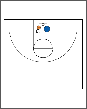 - Big man pivots to face the court and shuffles away from the basket. This cuts down the angle to the point guard.