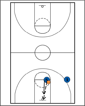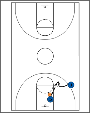 - The player who made the outlet pass receives a pass back from player 1 and finishes at the rim.