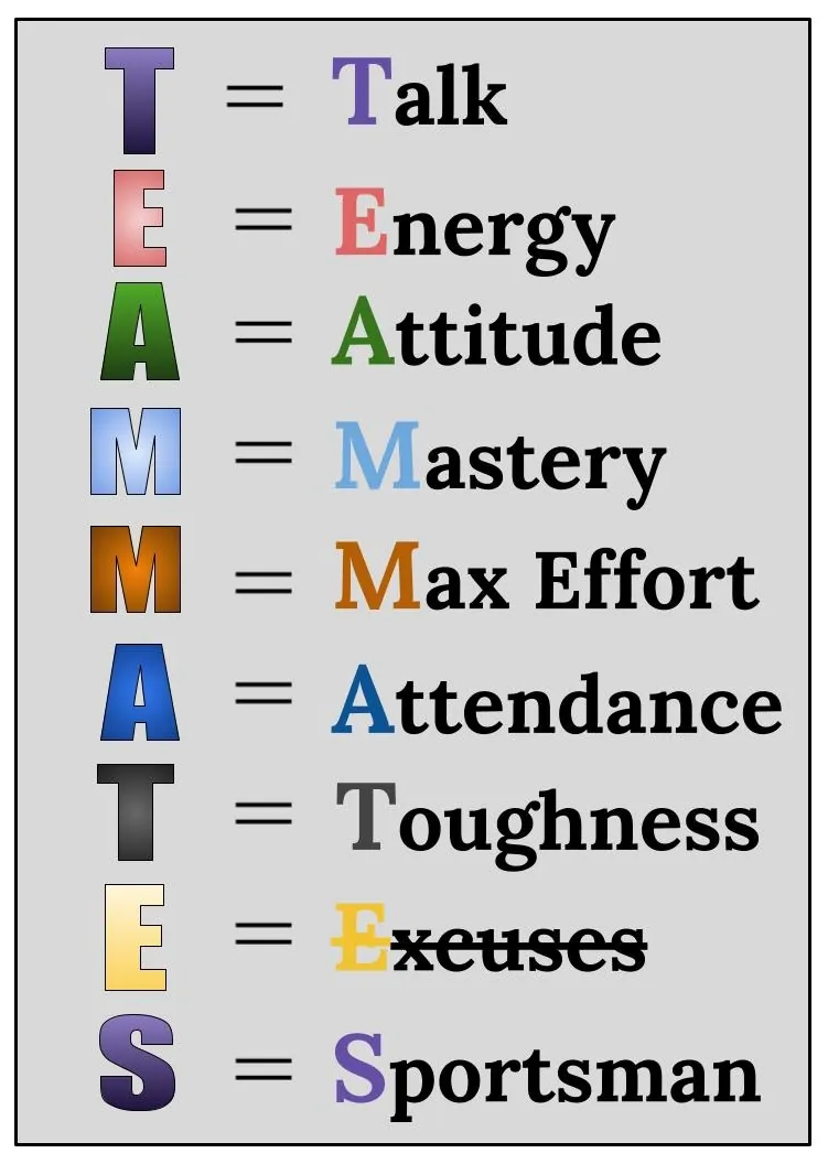 • Talk nicely TO teammates, coaches, and opponents. Be positive, kind, and supportive. Use teammates' names.