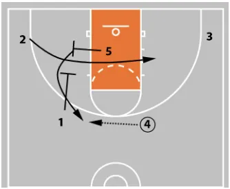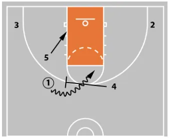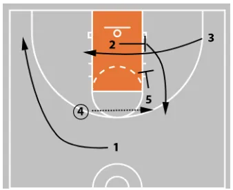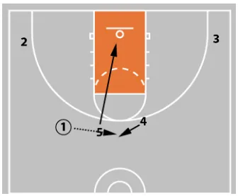 5 tries to seal the defense to gain an entry pass or better offensive rebounding position. If no scoring opportunity presents itself, they can flash to the high post.