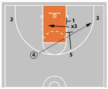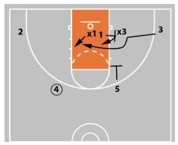 3 then cuts across the lane off 4’s screen and receives the pass from 1.